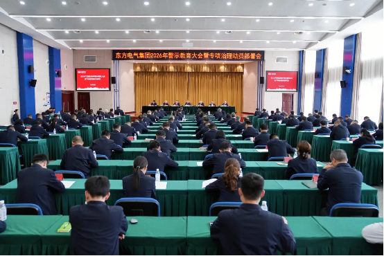 4月8日,东方电气集团召开2026年警示教育大会暨专项治理动员部署会,全面贯彻党的二十届四中全会、二十届中央纪委五次全会精神,深入贯彻落实国务院国资委党风廉政建设和反腐败工作部署,持续推动树立和践行正确政绩观学习教育,开展警示教育,深化专项治理,持之以恒推进全面从严治党。集团公司领导罗乾宜、张彦军、张少峰、孙国君、袁明刚、王军、李建华出席会议。